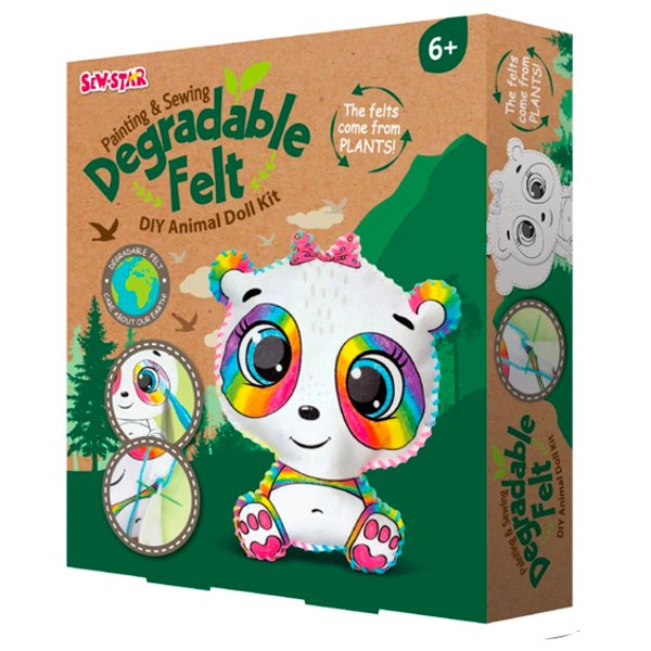 El kit te permite hacer y decorar una muñeca Panda, incluye: elementos de fieltro listos para coser, inserciones, hilo arcoíris, aguja de plástico, marcadores de tres colores e instrucciones. Ayuda a desarrollar habilidades artísticas y creativas.