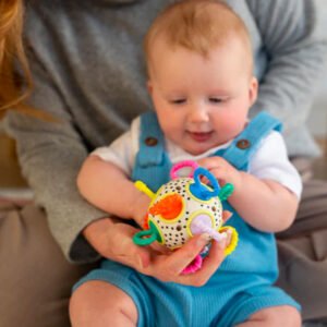 La bola central está llena de pequeñas cuentas, por lo que vibra en cada sacudida. Es el juguete antiestrés perfecto para bebés.