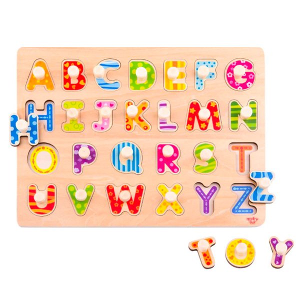 Este rompecabezas del alfabeto fomenta el reconocimiento de letras y el descubrimiento de palabras, mientras perfecciona las habilidades de motricidad fina mediante el encaje preciso de cada pieza educativa