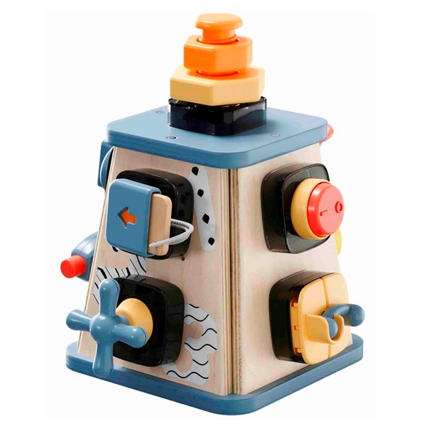 Un cubo de actividades multisensorial diseñado para manos pequeñas y mentes en desarrollo. Con funciones de giro, torsión, alternancia y presión en cada lado, la torre de trabajo mantiene a los niños pequeños entretenidos con juegos creativos sin pantallas.